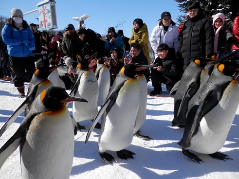 旭山動物園の冬の風物詩 ペンギンの散歩