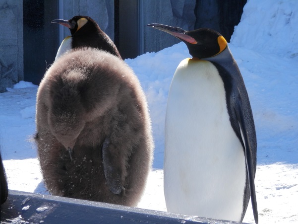 着いて早々、イルカのショーの時間でしたのでそれを見学し、そのあとペンギンの散歩の時間となりました。散歩をするペンギンはジェンツーペンギンという種類で、旭山動物園のキングペンギンと比べると小さく、またペンギンの散歩コースは新雪が積もっているところなので、雪に埋まりながら歩くため時間がかかり、また同じコースを2周するので移動しなくてもしっかり見れました。また平日にもかかわらず人は結構いましたが、旭山動物園ほど多数でもないので好きな場所で落ち着いて見ることが出来ました。(というよりも旭山動物園の方があまりにも有名なので、そちらの見学の人数が尋常ではないといったところですが)