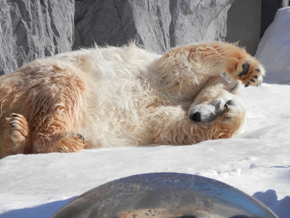 そのあと、水中からのホッキョクグマ、名物の透明な筒の中泳いで通り抜けるアザラシ、2匹で雪の中でじゃれ合っている双子の子ヒョウなどなど見て回り、動物園を後にして旭川駅へ向かいました。