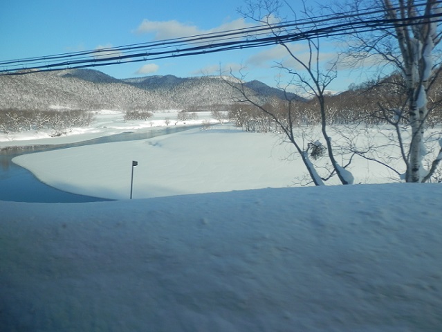 稚内行きの特急に乗りましたが、北海道に着いた時から天気は快晴で、冬の北海道の車窓もばっちり楽しめました。まあ一面銀世界なので、周りを見渡しても白ばかりでしたが。