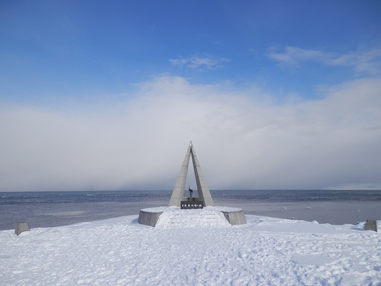 車を借りて、早々に宗谷岬に向かいます。除雪してあるとはいえ、アスファルトは全然見えませんが、意外と運転しやすく、雪に慣れていない関東の人間でもこれといった事もなく4~50分位で到着しました。